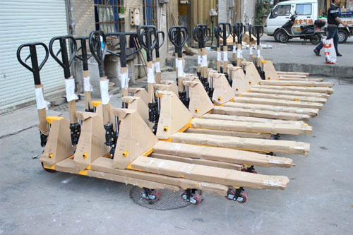 液压搬运车是一种小巧方便,使用灵活,载重量大,结实耐用的货物搬运工具,俗称"地牛"。搬运车除了具有托运货物的功能外,为了方便起降货物,车地盘与轮之间带有液压装置,可以方便的将车推入货箱底座之下,然后用液压将地盘升高,托起货物,便可拖动货物移动,到达目的地后,用液压将底盘降落,货物也随之落地,可以方便的抽出搬运车,省去了人力搬运的复杂过程。