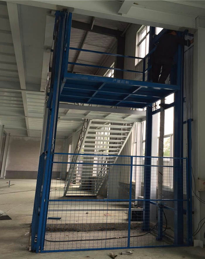 载重500KG导轨式升降平台主要用各种工作层间货物上下运送;立体车库和地下车库二层以上高楼间、无法开挖地坑场所、顶层高度不能到达要求的场合等比较难解决的狭小空间。产品液压系统设置防坠、上下层门互动连锁,各楼层和升降台工作台面均可设置操作按钮,实现多点控制。产品安全牢固,用料重实,升降平稳,安装维护简单方便,是经济实用的低楼层间替代电梯的理想货物输送设备。根据升降台的安装环境和使用要求,选择不同的可选配置,可取得更好的使用效果。