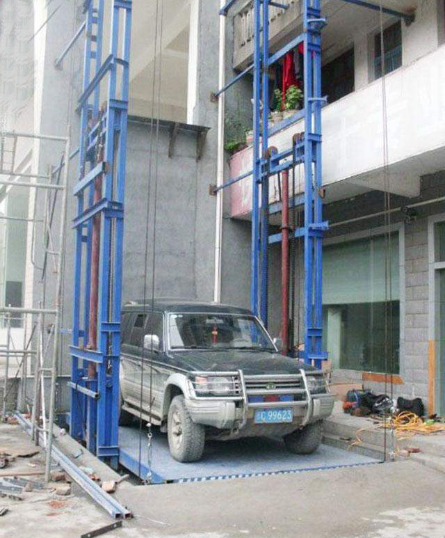导轨链条式汽车升降平台是一种大吨位汽车或货车修理和保养单位常用的专用机械举升设备。是根据导轨式货梯更改而来。导轨式汽车升降平台还是通常被当做楼层之间运送汽车的产品。随着经济的发展,私家车不断增加,停车空间紧缺,在停车库的建设中,往往会遇到因场地狭小无法采用自走式坡道的情况,为了将汽车搬运到不同平层中存取车辆,就需要采用垂直升降的汽车升降货梯。这样汽车升降平台就可以替代汽车进出车库的斜坡道,大大节省了停车使用空间,提高车库的利用率。这种汽车升降货梯常用于地下或屋顶及建筑自走式车库存取汽车的搬运。该升降平台具有无需深挖地坑、安装环境要求少、维护简单等特点。