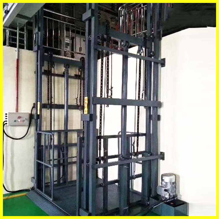 厂房液压货梯是用于货物升降的液压升降机械设备,釆用液压站作为主要动力,液压油缸作为支撑,T型导轨作为轨道,通过特种链条和滚轮传动,保证轿箱运行安全稳定。